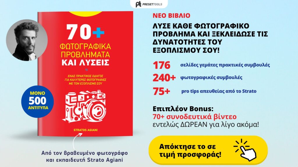 Στο νέο μεγάλο μας βιβλίο 176 σελίδων σου δίνω πρακτικές συμβουλές, ιδέες και παραδείγματα με ανάλυση ώστε να λύσεις κάθε φωτογραφικό πρόβλημα που καταστρέφει τις φωτογραφίες σου.